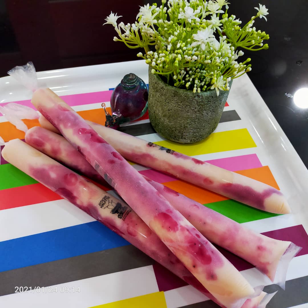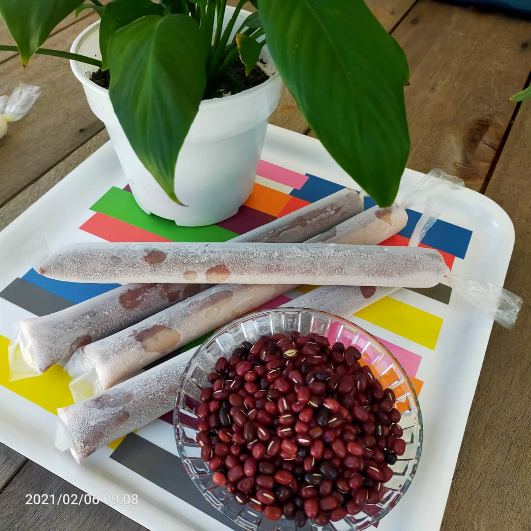 Campuran air, susu, gula perang, sirap ros & kacang merah yang direbus.